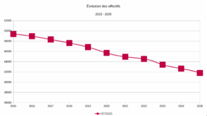 - Prévision 2026-2027 : 41 419 élèves (2026) → 40 668 (2027).