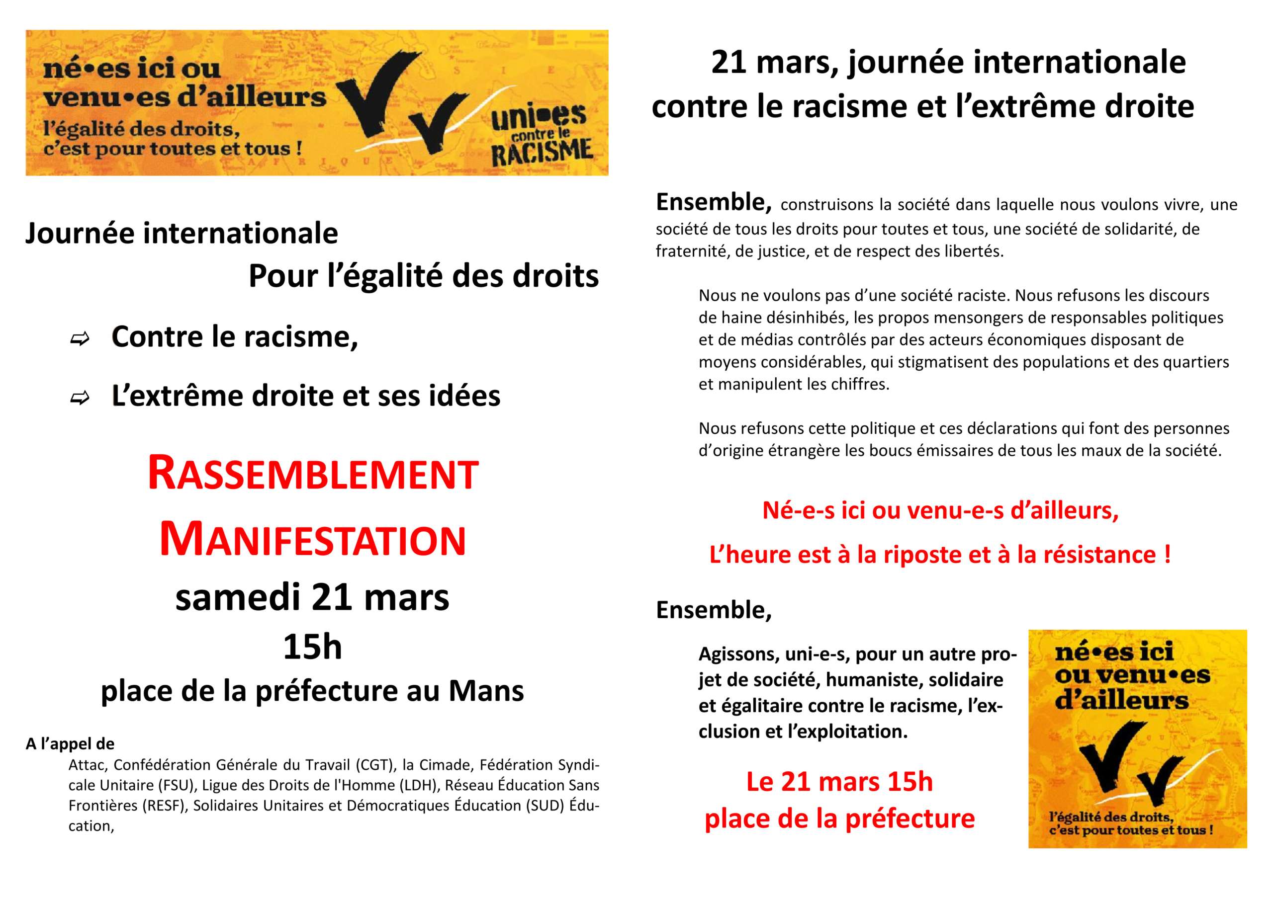 samedi 21 mars – 15h – Place de la préfecture au Mans