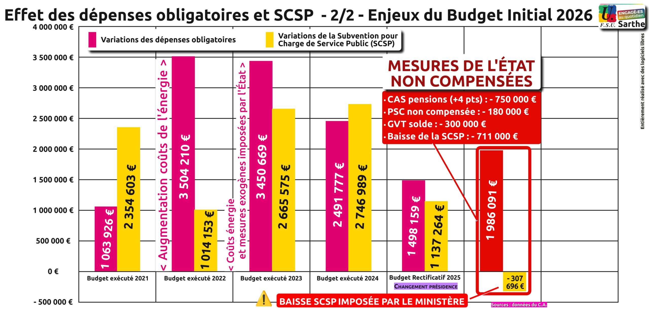 L’université sort de quatre années de dérive : absence totale de vision stratégique, dépenses discrétionnaires inconséquentes, non pérennes et non financées. Le Budget Rectificatif (BR) 2025, bien que nécessaire pour éviter une sortie de route financière, a imposé des efforts colossaux à l’ensemble des personnels. Pourtant, le Budget Initial (BI) préparé offrait une perspective de retour à l’équilibre, à la fois soutenable, juste et transparente. Cette lueur d’espoir est aujourd’hui balayée par les dernières mesures non compensées transmises par la rectrice, une baisse de la dotation de l’État (SCSP) alors que les effectifs étudiants augmentent.